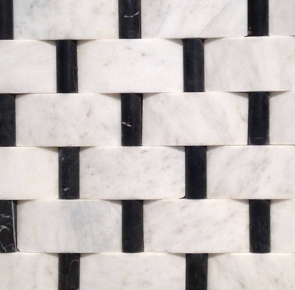 Casa bianca honed marble (3D)wavy with 3/4" nero honed marble verticals wickerwo